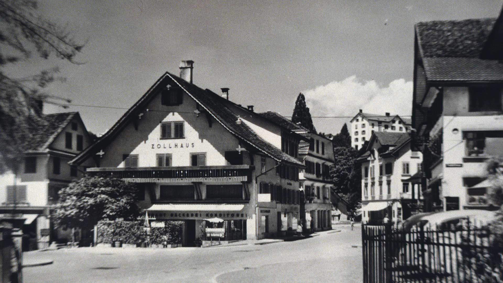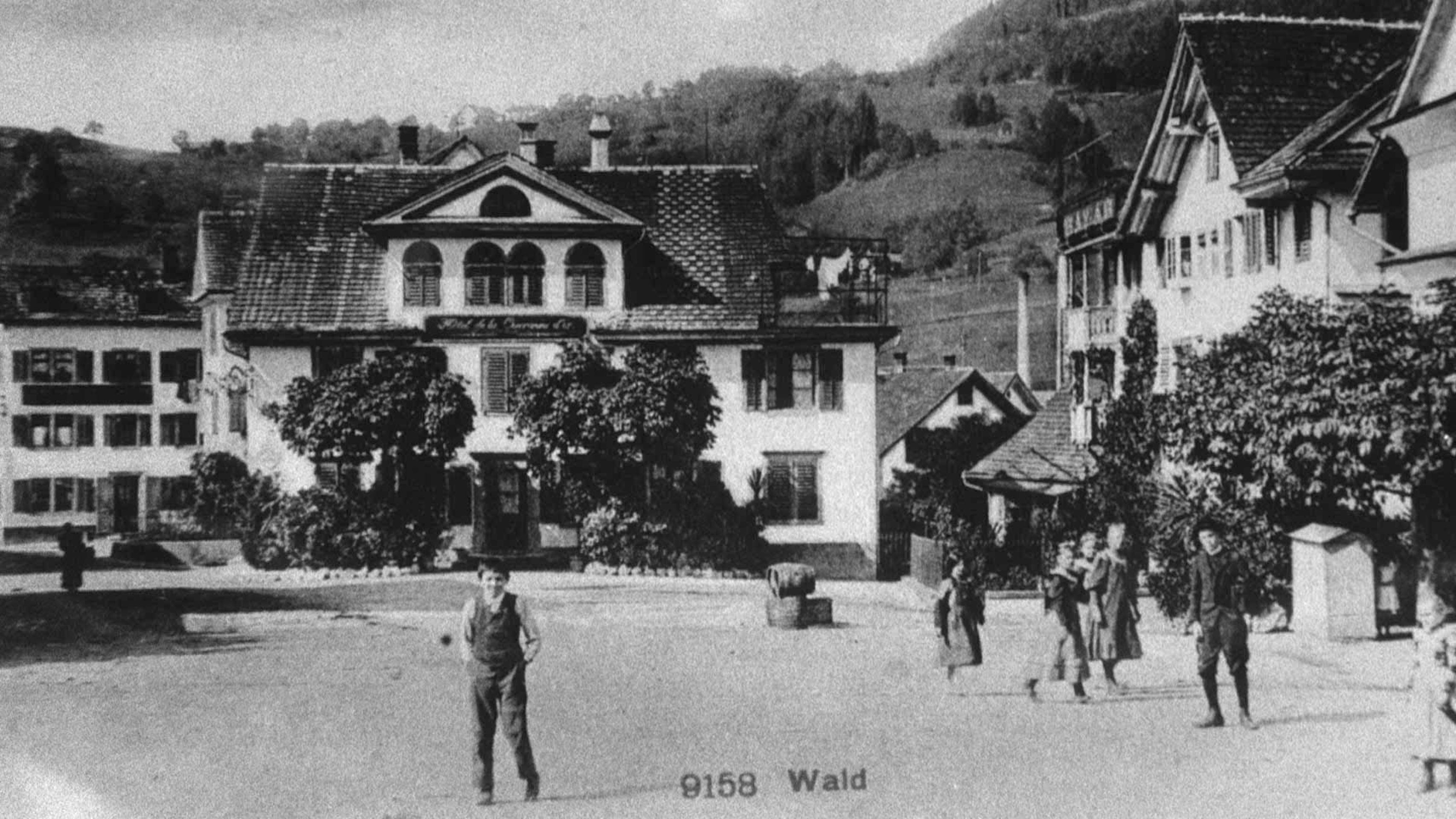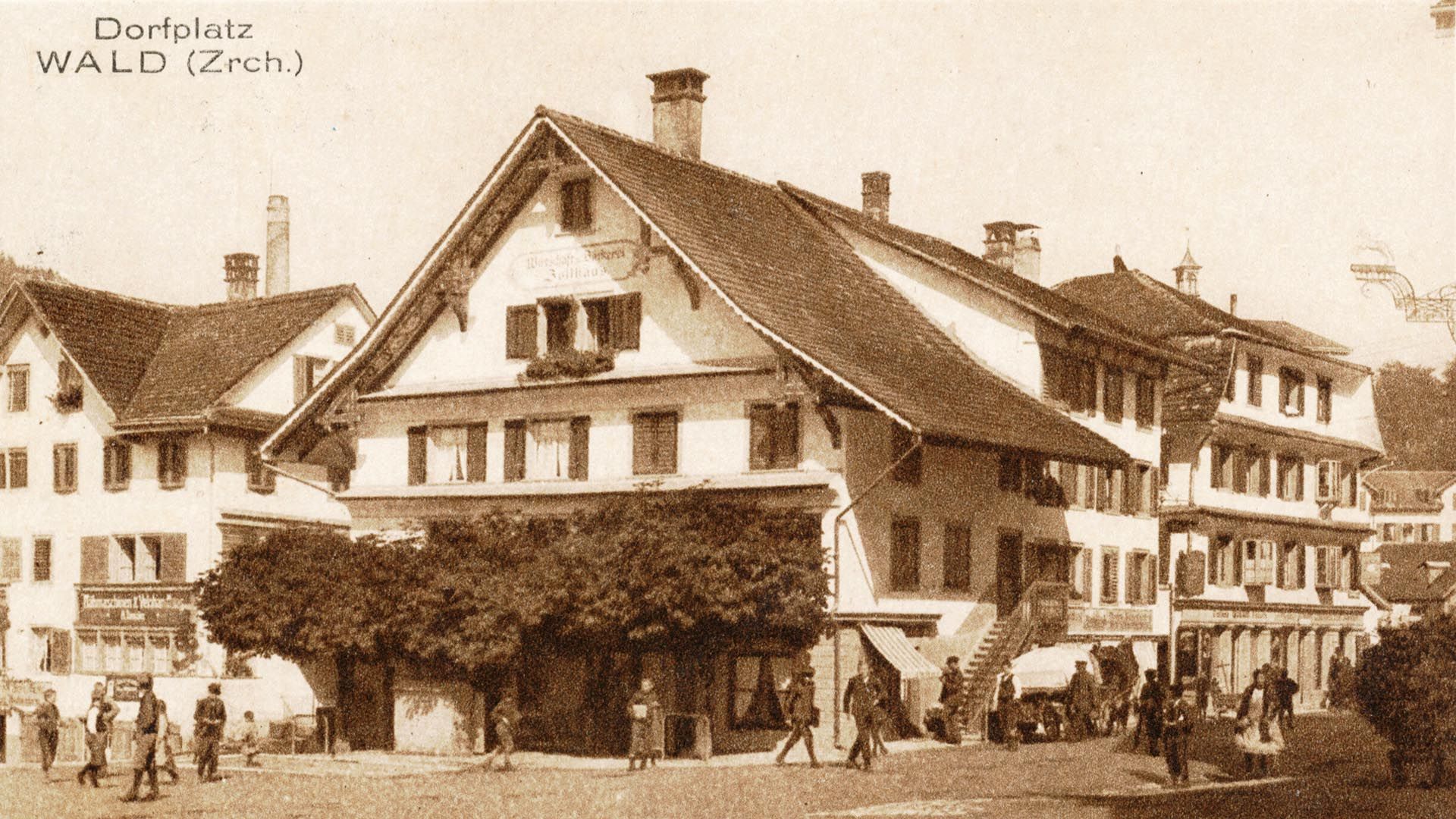 Man nimmt das heute nicht mehr unmittelbar wahr, aber der Dorfplatz ist so etwas wie die natürliche Mitte Walds. Hier kreuzen sich die Strassen aus allen Richtungen. Im Bild zu sehen ist das historische Zollhaus. Bis zu seinem Brand war es ein markanter Blickfang.