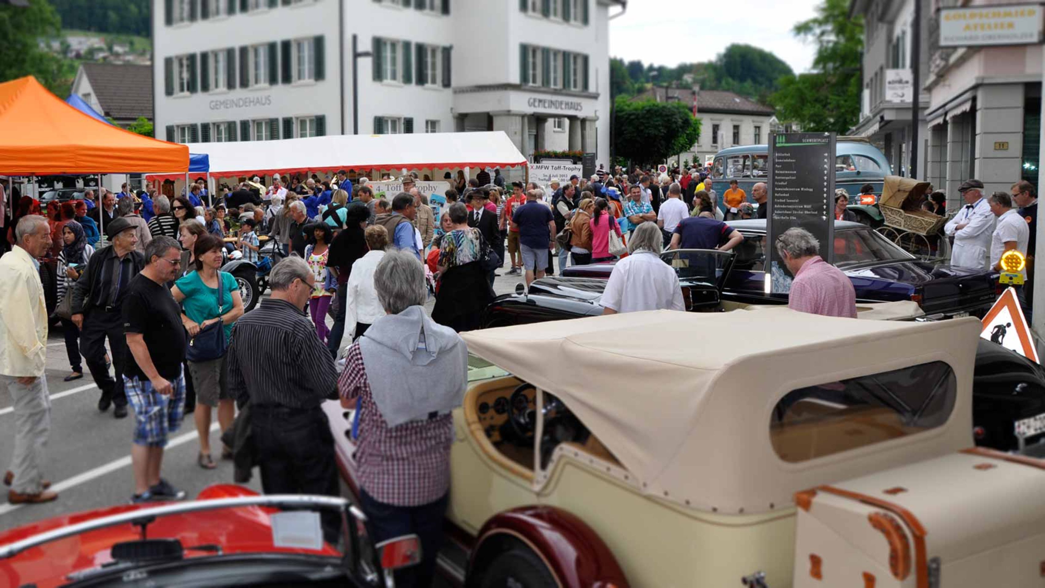 Verkehrsberuhigt? Wenn alle zwei Jahre „Wald rollt“, dann knattern Oldtimer unterschiedlichster Provenienz durch die Bahnhofstrasse. Und das Publikum ist meist stilecht gekleidet.