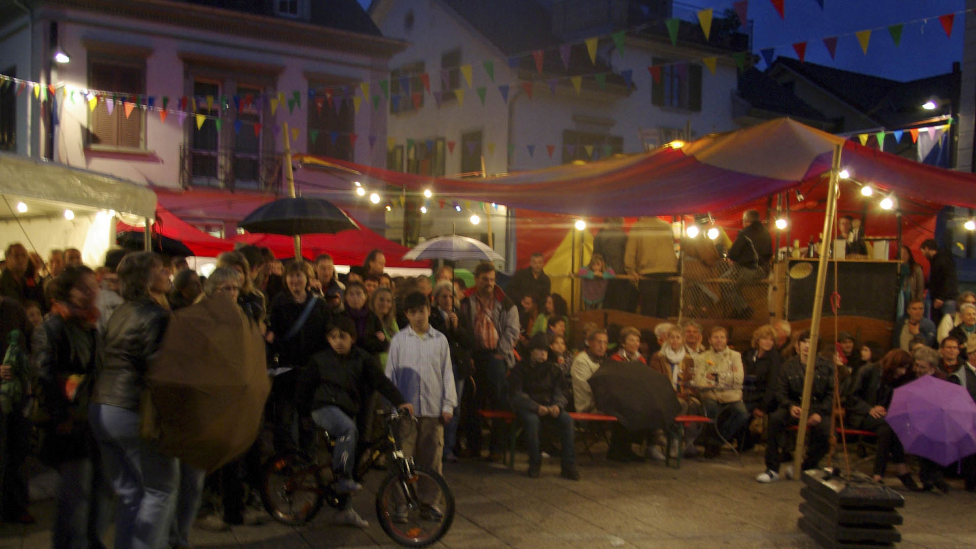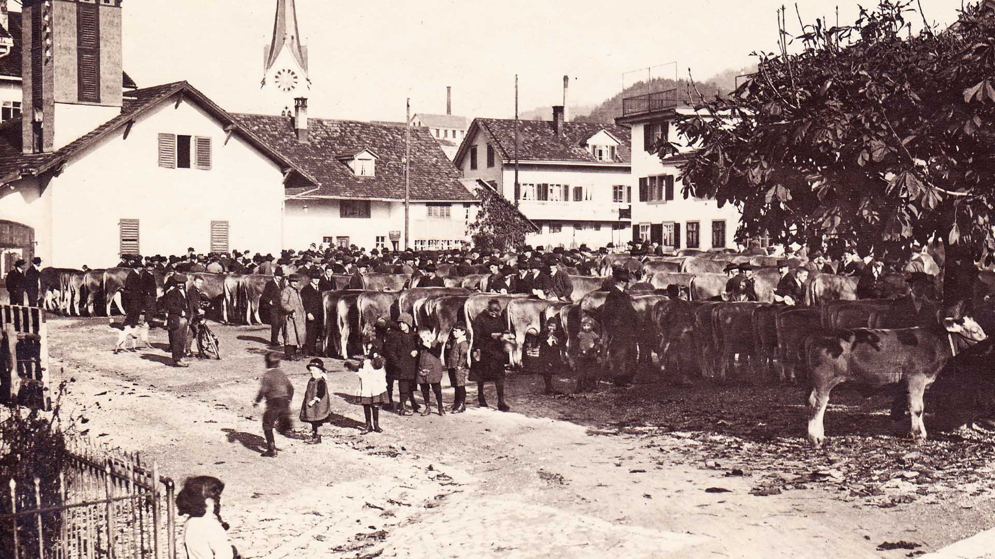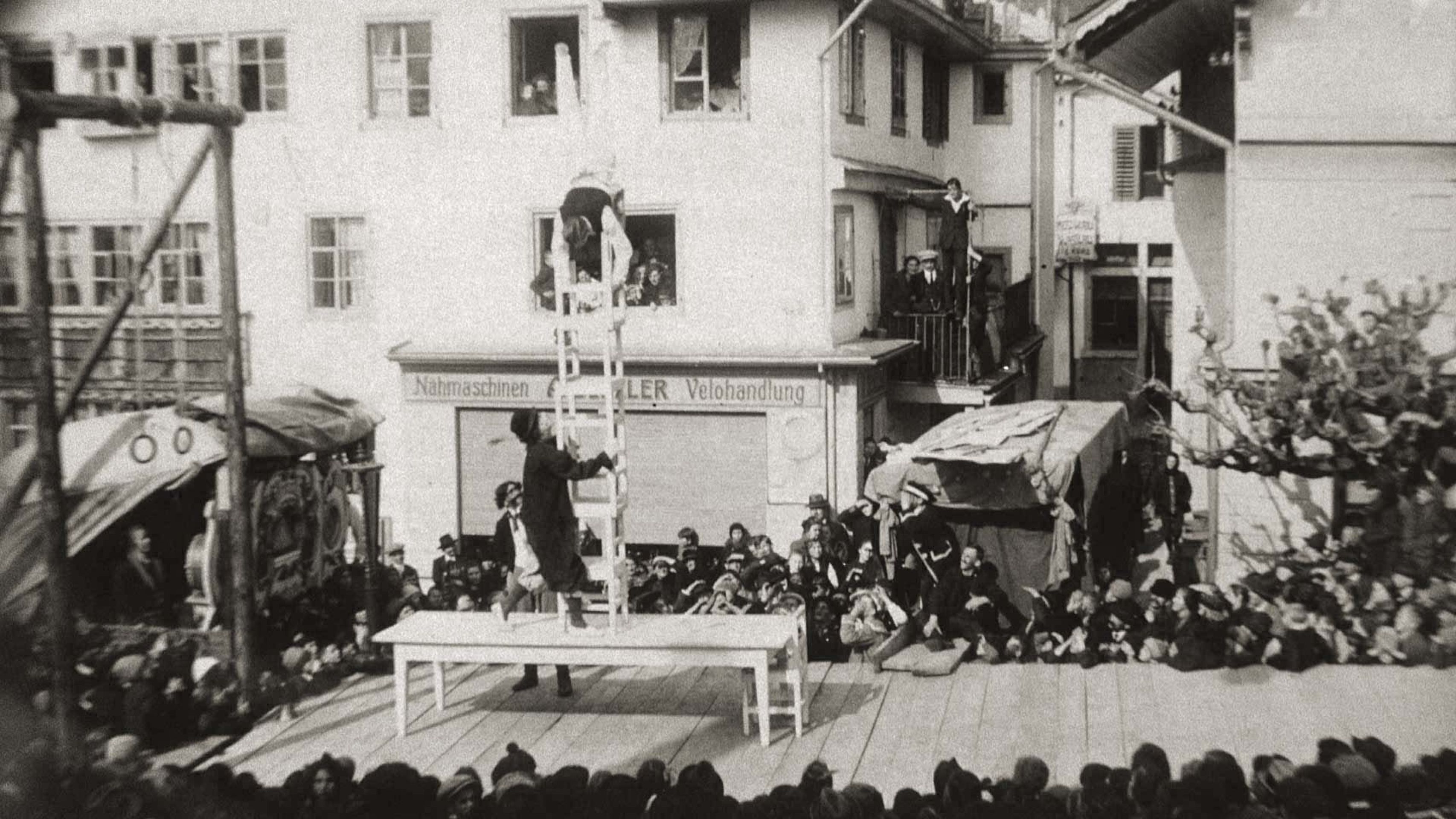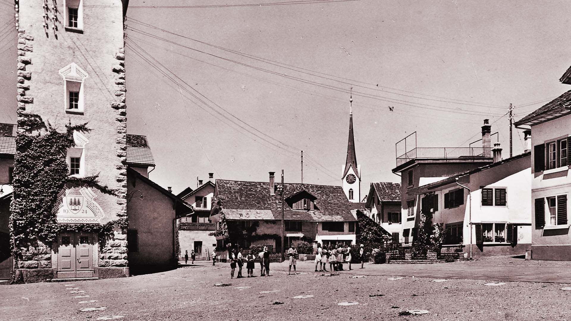 Wer am Dorfplatz wohnte, hatte Glück, denn nur der Blick aus dem Fenster war gratis. Alle anderen Zuschauer mussten bei den Freiluftspektakeln 10 Rappen Eintrittsgeld bezahlen.