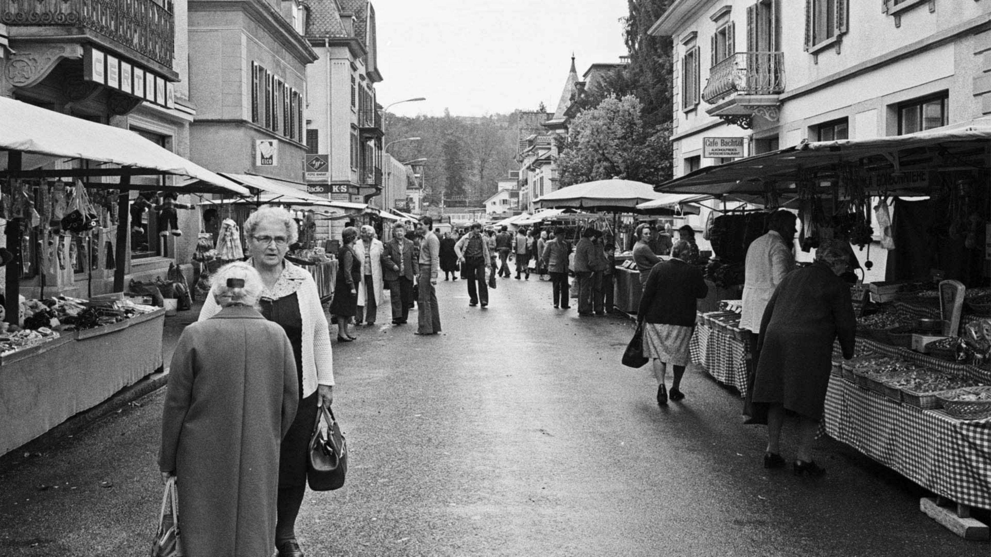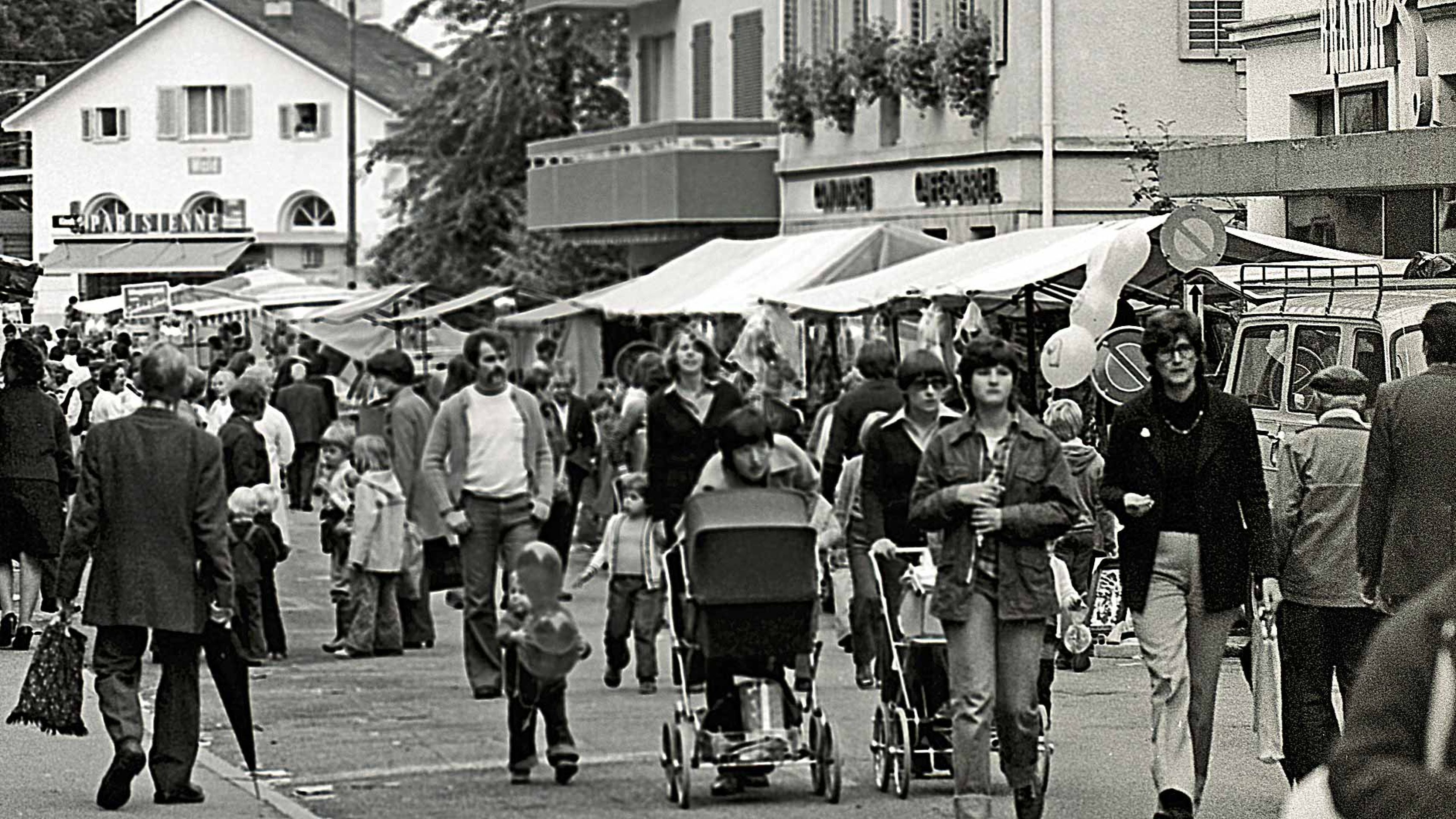 Der Märt ist eine Attraktion für alle. Auf dem Bild von 1977 etwa Luftballons für die Kleinen...