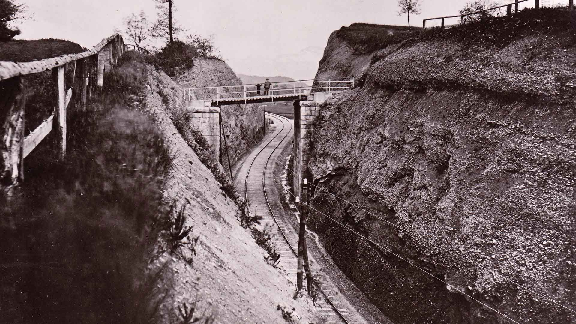 Stein und Geröll, mit dem das Sumpfland aufgeschüttet und befestigt wurde, stammte von Durchbrüchen und Tunnelbauten entlang der neuen Bahnstrecke.