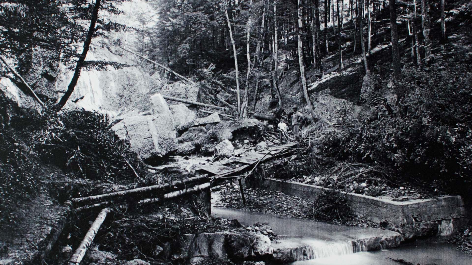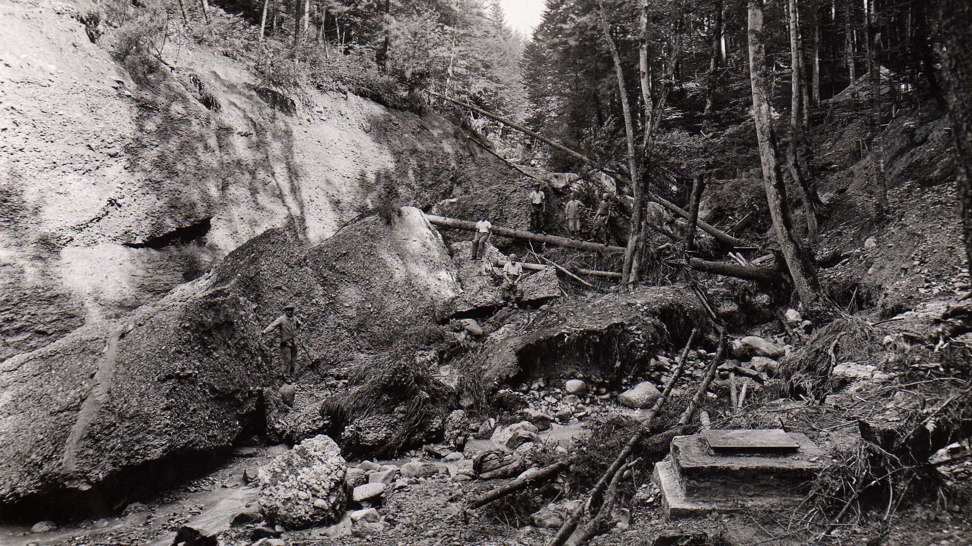 Immer wieder kommt es im Sagenraintobel zu einschneidenden Unwetterschäden. Besonders verheerend war die grosse Überschwemmung 1939.