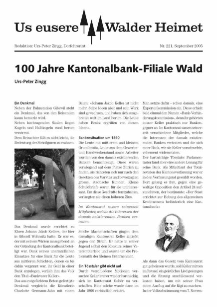 Johann Jakob Keller und die erste Bank in Wald